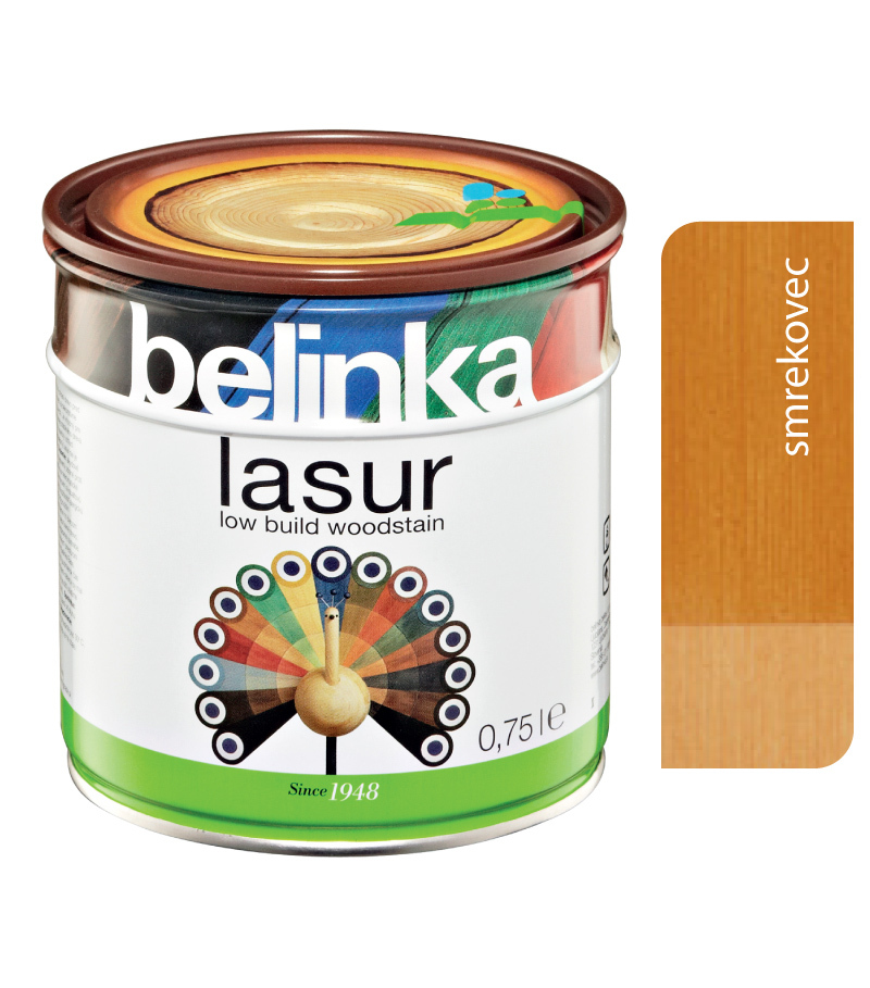 Tenkovrstvá lazúra, ktorá chráni drevo pred poveternostnými vplyvmi, zároveň aj dekoratívne zafarbuje a zušľachťuje jeho povrch.Vlastnosti Belinka Lasur: tenkovrstvá lazúra chráni drevo pred poveternostnými vplyvmi jemne matný a menej lesklý konečný vzhľad 19 štandardných farebných odtieňov S lazúrou chránime vonkajšie časti strešných konštrukcií, fasádne obklady, ploty, kôlne, záhradný nábytok a iné drevené prvky exteriéru a interiéru, keď chceme, aby po natieraní štruktúra dreva bola viditeľná, konečný vzhľad povrchu jemne matný. Vyrábame ho v 19 štandardných farebných odtieňoch.V prípade, že drevo bude vystavené poveternostným vplyvom alebo vlhkosti, ho pred natieraním výrobkom Belinka Lasur impregnujeme výrobkom Belinka Base. Bezfarebný odtieň Belinka Lasur nie je vhodný na ochranu dreva v exteriéri. Ak chceme na dreve, ktoré je vystavené poveternostným vplyvom, zachovať prírodný vzhľad, ochránime ho výrobkom Belinka Toplasur uv plus.Spôsob nanášania Belinka Lasur:Pri prvom nanesení Belinka Lasur musí byť drevo suché, čisté, kvalitne obrúsené a pri použití v exteriéroch natreté prostriedkom Belinka Base. Pri renovovaní starých lazúrových náterov povrch jemne obrúsime, čím odstránime zle držiace častice starej lazúry (brúsny papier 180–220). Pri renovovaní starých krycích náterov (olejová farba, lak) je potrebné tieto najskôr úplne odstrániť a potom postupovať tak, ako pri prvom ošetrovaní dreva.Aplikácia Belinka Lasur:Belinka Lasur pred použitím dobre premiešať. Aplikujeme nerozriedený štetcom alebo máčaním. Výdatnosť je 10-12m2 z 1l Belinka Lasur. Náradie čistíme syntetickými riedidlami (S6006).Zasychanie Belinka Lasur:Náter je v bežných podmienkach (20 °C, 65 % relatívna vlhkosť vzduchu) suchý v priebehu 8 až 12 hodín. Opätovne natierame po 24 hodinách, resp. keď je predchádzajúci náter úplne suchý. Optimálna teplota na natieranie je od 15 do 25 °C. Čas sušenia sa výrazne predlžuje so znižovaním teploty. Čas sušenia je dlhší aj pri vyššej relatívnej vlhkosti vzduchu. VarovaniaAby sme sa pri obnovení vyhli stmavenému povrchu, zafarbujúcemu výrobku Lasur môžeme dodať najviac 30 % bezfarebného Lasuru, a takto pripravenou zmesou natrieme povrch.