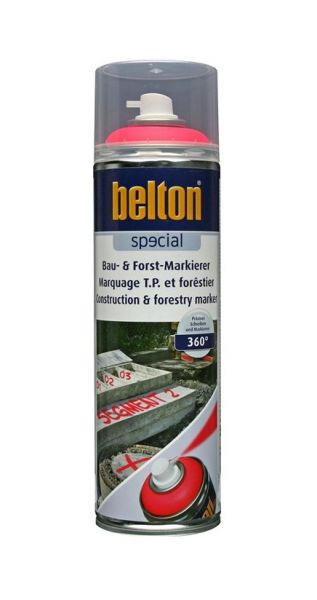 Belton farba v spreji značkovacia červená, je rýchloschnúci špeciálny lak na presné písanie a označovanie pre oblasť stavebníctva, drevárstva, lesného hospodárstva a pod. Lanceta umožňuje veľmi presné písanie. Obsahuje 360° striekaciu hlavicu. Drží na všetkých plochách a nesteká. Je vhodný na savé aj nesavé podklady.