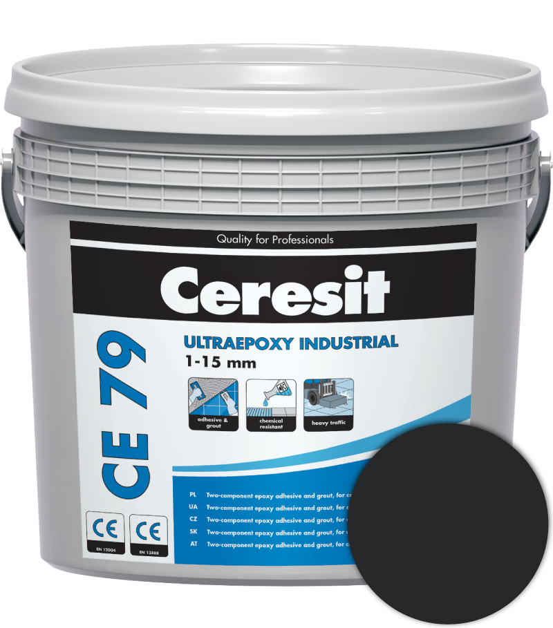 Ceresit CE 79 UltraEpoxy Industrial grafitová 5kg Dvojzložková epoxidová chemicky odolná malta na lepenie a škárovanie obkladov a dlažieb