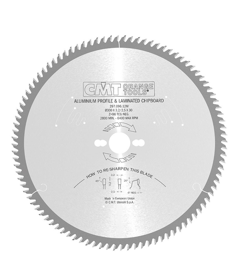 Pílový kotúč s negatívnym uhlom čela. Skonštruované pre vysoký výkon, kvalitný rez a dlhú životnosť ostria. CMT kotúče pre neželezné kovy a plasty sú ideálne pre skracovacie, radiálne a kotúčové píly. Použitie pre rezanie všetkých neželezných kovov a plastov, lamina a obojstranne povlakovaných dosiek melamínom. POZOR: Odporúčame používať mazanie emulziami pre neželezné kovy a plasty.Parametre: Rezný priemer: 165 mmUpínací priemer: 20 mmPočet zubov: 56Šírka zuba: 2,2 mmUhol čela: -6°Typ zuba: TCGUnášací otvory: 2/6/32