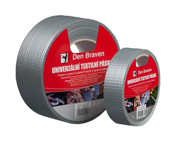Den Braven Univerzálna textilná páska 2,5cm 10m je určená na všetky opravy, lepenia a montáže v interiéri aj exteriéri v hobby sfére. Páska je vodovzdorná, jednoducho a okamžite použiteľná. Nosič tvorí laminovaný polyetylén na bavlnenej textilnej mriežke s nánosom vysoko lepivého kaučukového filmu. Používa sa na ovíjanie á bandážovanie potrubí pri tepelnej izolácií, na opravy poškodených a roztrhnutých plachiet stanov, automobilových plachiet a célt. Je vhodná aj na opravy v automobilovom priemysle, taktiež opravovanie roztrhnutých fóliovníkov, upevňovanie a fixáciu chráničov a pod. Celková hrúbka pásky je 0,2 mm. Tepelná odolnosť pásky je od -40 °C do +80 °C. Rozmery: 25 mm x 10 m
