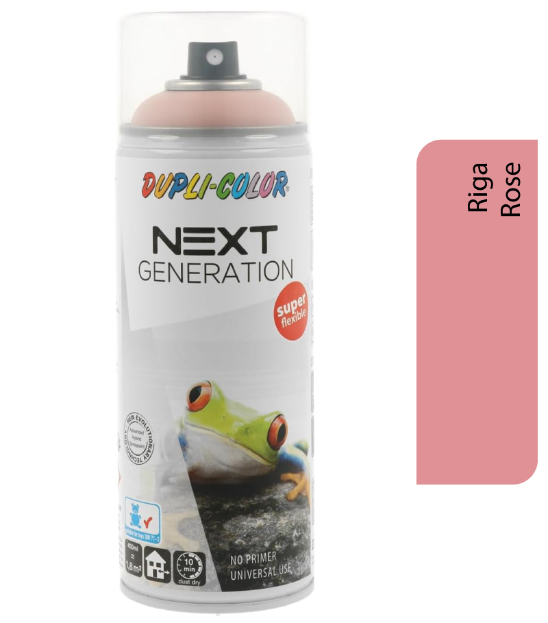 Inovatívna kvalita spreju zabezpečuje veľmi pohodlné použitie a vysokú spoľahlivosť pre dokonalé výsledky lakovania. Neutrálna vôňa kombinovaná s nízkou rozprašovacou hmlou umožňuje rovnomerné striekanie vo vetraných miestnostiach. Rýchloschnúca farba s perfektnou priľnavosťou na mnohých povrchoch aj bez špeciálneho základného náteru, DUPLI-COLOR NEXT ponúka rôzne možnosti využitia v domácnosti, DIY, art & crafts alebo u umelcov. Vďaka pokročilej kvalite laku a špeciálne zvolenému farebnému sortimentu je DUPLI-COLOR NEXT ideálny pre aplikácie do domácností, dekoratívne účely alebo hobby kutilov. Argumenty sú presvedčivé – Vyskúšajte a dajte sa do striekania! • Neutrálna vôňa bez chemického zápachu • Jednoduchá aplikácia pre univerzálnu kompatibilitu s inými typmi farieb. • Dokonalá priľnavosť na mnohých povrchoch bez základného náteru • Aj pre priamu aplikáciu na polystyrén a plasty • Jemné striekanie s elegantnými krycími vlastnosťami • Rýchle schnutie a dokonalé krytie • Vhodné pre vnútorné i vonkajšie použitie • Flexibilné vrchný náter s dobrou odolnosťou proti poškriabaniu • Biologicky rozložiteľné rozpúšťadlá pre užívateľsky prívetivú aplikáciu výdatnosť: V závislosti od podmienok farbe podkladu, 400 ml dostačuje pre 2 m² Schnutie (pri 20 ° C, 50% relatívnej vlhkosti): Proti prachu: po cca 10-20 minútach Nelepivý: po 45 minútach Prelakovateľný / cca 2 hodiny Vytvrdený: po 24 hodinách Doba schnutia závisí na okolitej teplote, vzdušnej vlhkosti a hrúbke aplikovanej vrstvy.