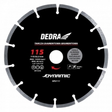 Diamantový segmentový kotúč Dynamic na rezanie betónu, tehly, lícovej tehly, prírodného a umelého kameňa značky Dedra. Priemer: 350 mm Otvor pre upnutie: 25,4 mmMožné použiť namokro aj nasucho.