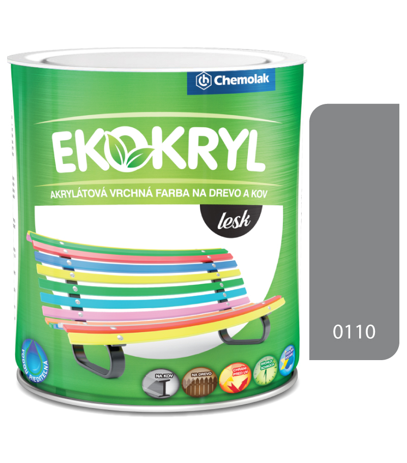 Ekokryl Lesk V2062 0110 šedá tmavá – vrchná akrylátová farba na drevo a kov 0,6l