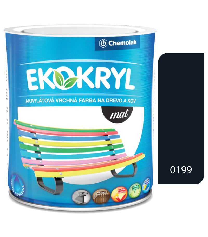 Ekokryl Mat V2045 0199 čierna – vrchná akrylátová farba na drevo a kov 0,6l