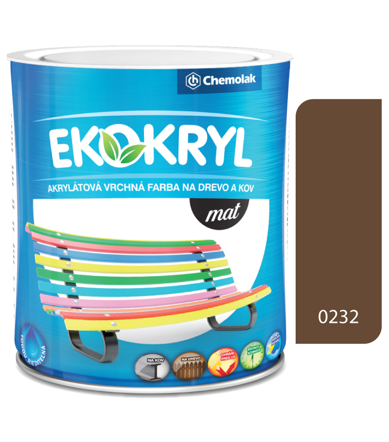 Ekokryl Mat V2045 0260 hnedá – vrchná akrylátová farba na drevo a kov 0,6l