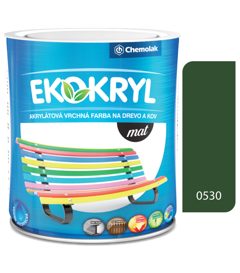 Ekokryl Mat V2045 0530 stredne zelená – vrchná akrylátová farba na drevo a kov 0,6l