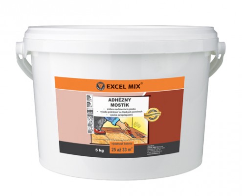 S použitím EXCEL MIX adhézneho mostíka možnoaplikovať na nesavé podklady terazzo, starú dlažbu Pre zálievku elektrických rohožíVÝHODY / VLASTNOSTI Mrazuvzdorná, vodeodolná Odolná proti bodovému zaťaženiu a obrusu Spracovateľnosť cca 20 minút. Pochôdznosť po cca 4 – 8 hod. Lepenie dlažby po cca 24 hod. Pevnosť v tlaku ≥ 30 MPa Pevnosť v ťahu za ohybu ≥ 6,0 MPa Prídržnosť k betónu ≥ 1,0 MPa Hĺbka obrusu 20 μm