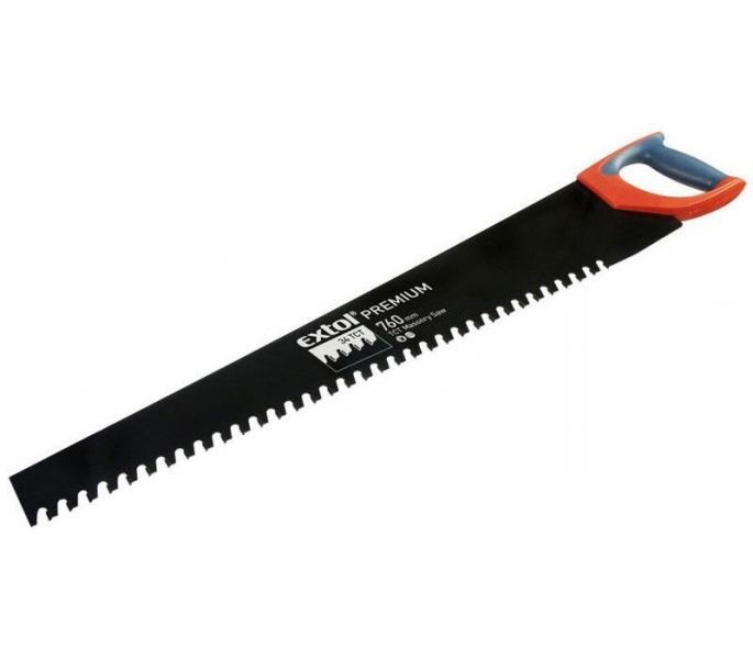 Pílka na pórobetón, 700mm, 34 SK plátkov orientačné označenie uhlov 45°a 90° pevný a stabilný list píly pre maximálny prenos energie na ozubené ostrie ergonomická rukovať z tvrdého plastu mäkčeného protisklzovou TPR gumou SK pláty široké 3,6mm pre razantný priechod píly rezaným materiálom Vlastnosti Pílka na pórobetón, 700mm, 34 SK plátkov, EXTOL PREMIUM: 700mm 34 SK plátkov Vyrobené / obsahuje materiál: spekaný karbid Číslo modelu Extol: 8812236