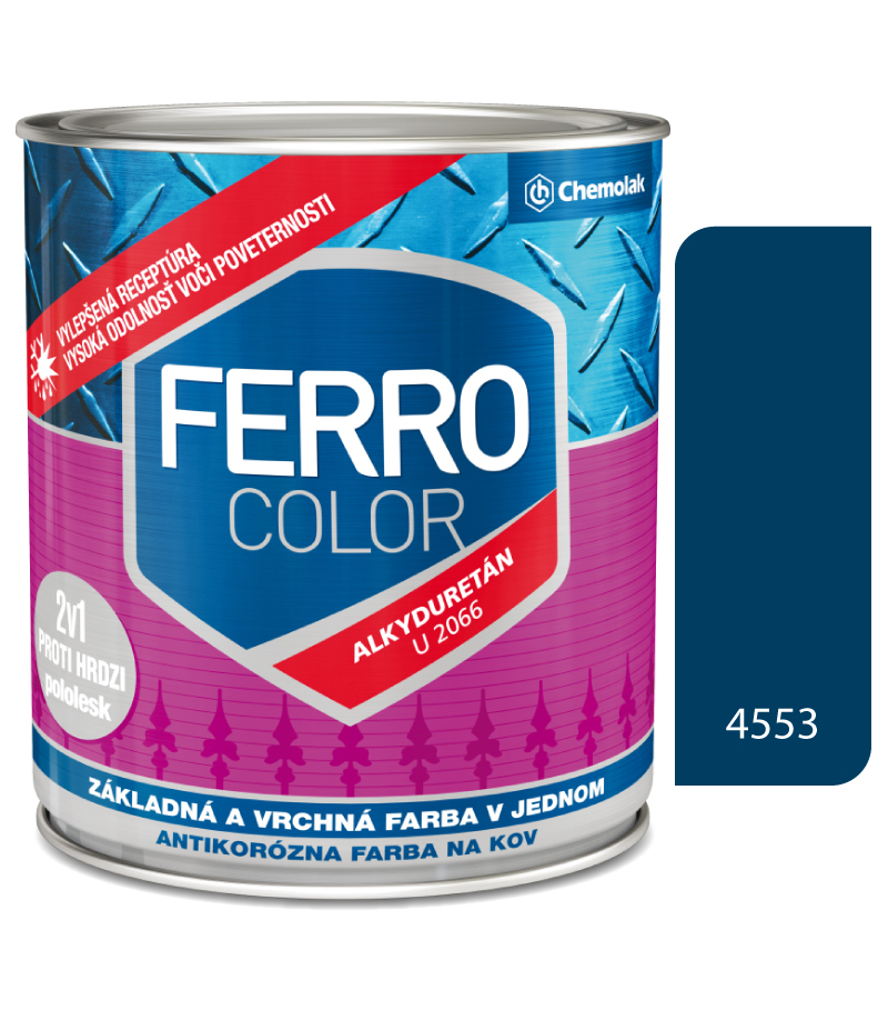 Ferro Color U2066 4553 tmavomodrá Pololesk – základná a vrchná farba na kov 0,75l