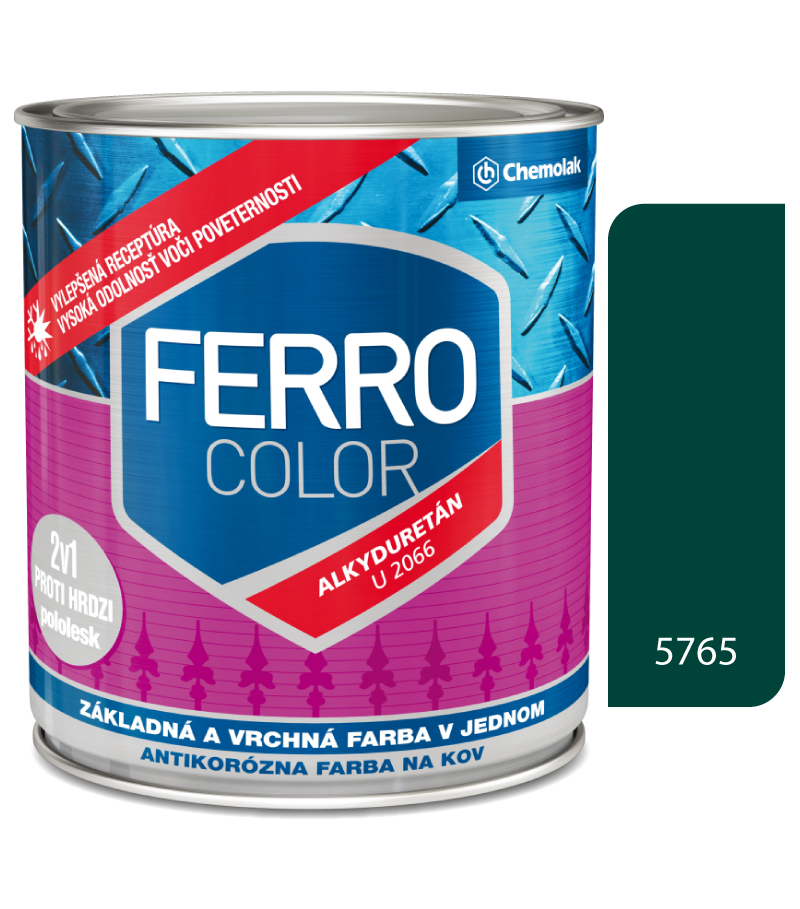 Ferro Color U2066 5765 tmavozelená Pololesk – základná a vrchná farba na kov 0,75l