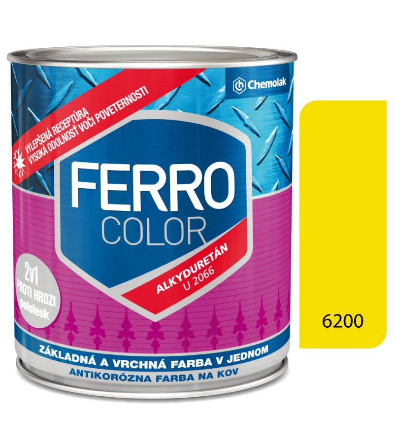 Ferro Color U2066 6200 žltá Pololesk – základná a vrchná farba na kov 2,5l