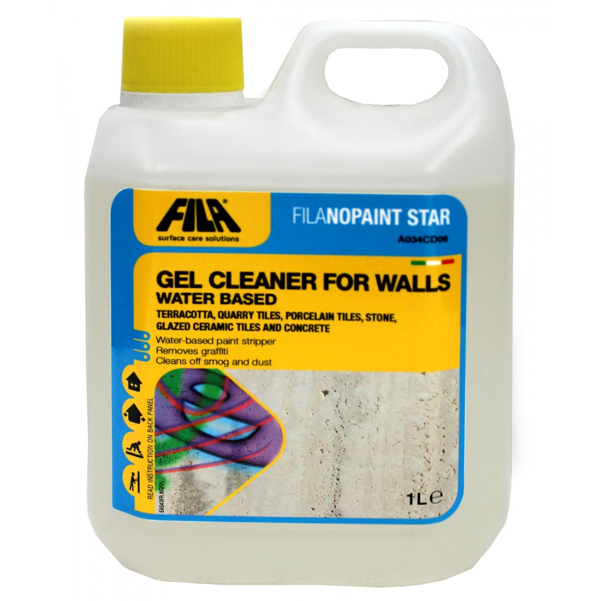 Fila Nopaint Star je veľmi silný čistič grafitov, a znečistených stien nápismi. Odstraňuje nápisy z už upravených ale aj nedokončených stien. Je vhodný najmä na drsné alebo porézne povrchy (cementové steny, neomietnuté tehly, prírodný kameň). Hĺbkovo čistí a odmasťuje, čistí aj vonkajšie steny od smogu a prachu. Odstraňuje filmotvorné a farbiace činidlá z neglazovaných dlaždíc.