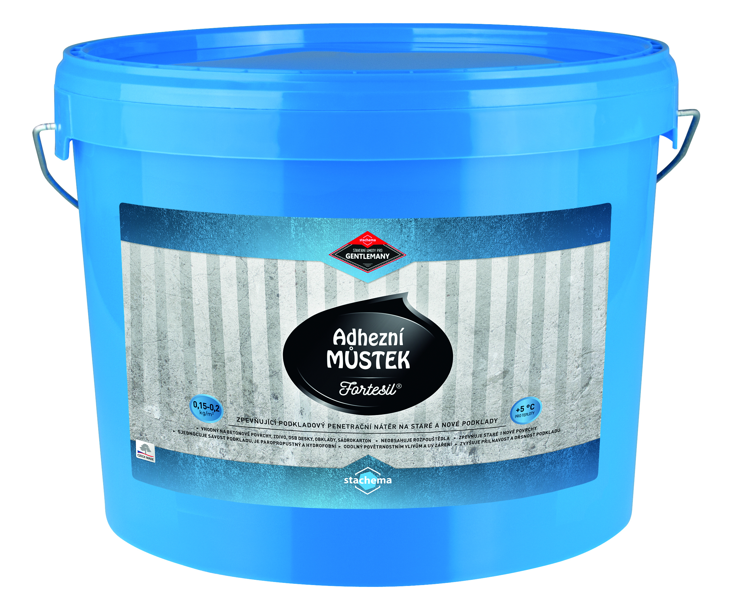 Fortesil adhézny mostík je jednozložkový bezrozpúšťadlový náter, ktorý je možné použiť v interiéroch aj exteriéroch na vyzreté omietky, betón, sklenené tapety, drevené, papierové alebo sadrokartónové povrchy, na drevotriesku, OSB dosky, umakart, obklady, dlažby atď. Ide o spevňujúci podkladový náter určený ako prvý náter všetkých savých aj nesavých stavebných materiálov, ktoré sú následne upravované stierkami, akrylátovými farbami, akrylátovými omietkovinami atď. Dá sa použiť aj samostatne pre spevnenie povrchu a zvýšenie jeho hydrofobity. Spotreba: 0,15-0,2kg/m2 podľa savosti podkladu