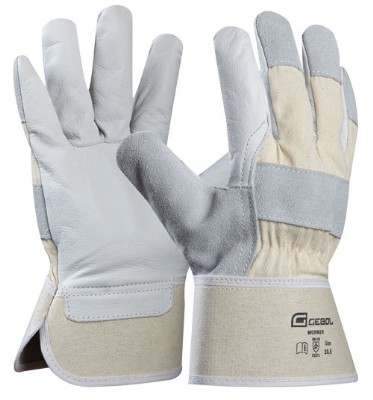 Pracovné rukavice Gebol Worker, profesionálna kvalita, cca. 1 mm hrubá koža, celokožené rukavice z hovädzinovej kože s pogumovanou manžetou 7 cm, vnútorná ruka a dvojité prešité švy.