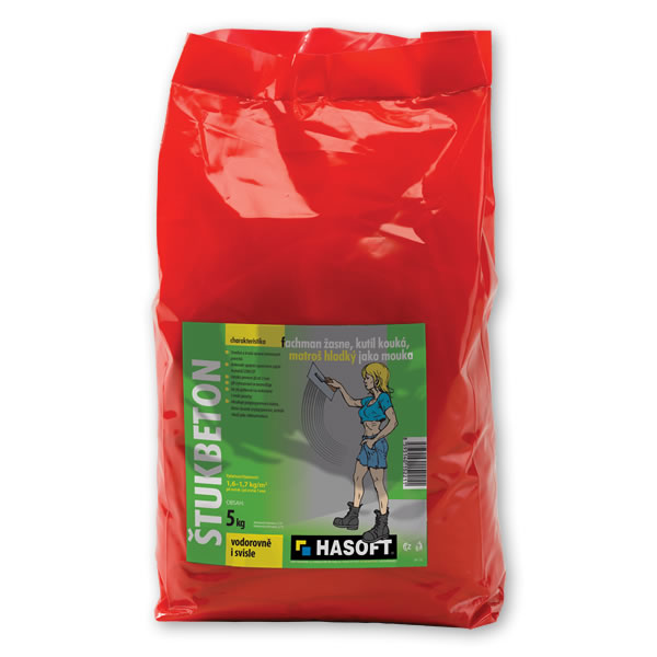 ŠTUKBETON je jednosložková suchá maltová směs určená zejména pro opravy a vytmelení poškozených a opravených povrchů betonových a železobetonových povrchů. Na stěrku ŠTUKBETON může být nanášen libovolný typ sekundární ochrany v závislosti na expozici opravené konstrukce.ŠTUKBETON je jednosložková plastifikovaná suchá maltová směs s obsahem redispergovatelných polymerů.