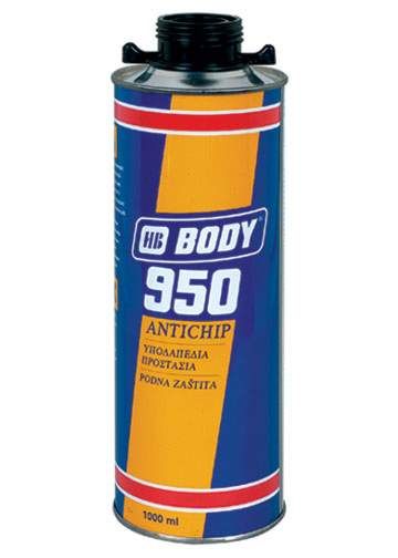 Body 950 v čiernej farbe je izolačný protihlukový materiál vyrobený na báze kaučuku. Má optimálne krycie schopnosti. Je určený na vnútorné a vonkajšie časti karosérie automobilu. Nanáša sa striekaním (pištoľ Body UBS) pri tlaku 5-6 bar. Náter schne rýchlo, je elastický a vytvára krúpkový povrch.