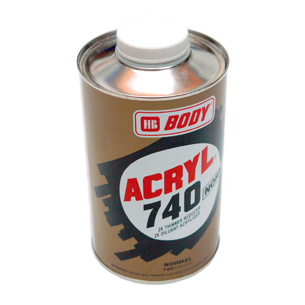 Body acryl 740 normal je akrylátové riedidlo určené na riedenie polyuretánových a akrylátových látok pri normálnej teplote (18-25°C). Vytvára perfektný povrch bez predĺženia doby sušenia. Je vhodný aj na čistenie náradia, ktorým boli nanášané akrylátové materiály.