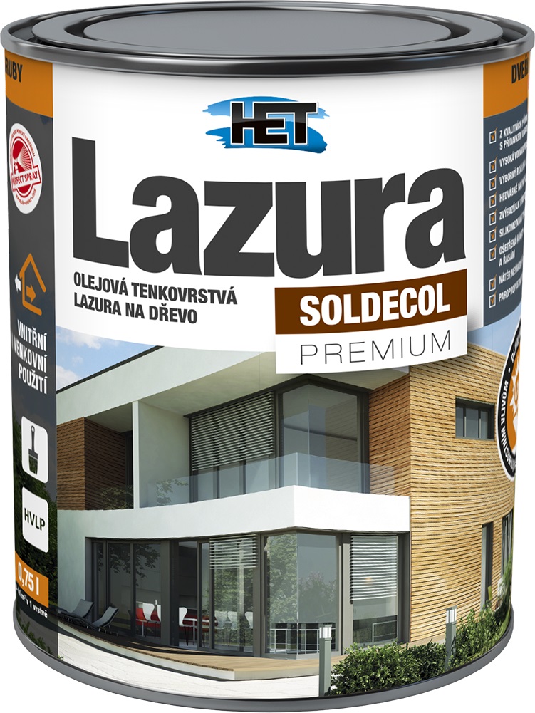 Het Soldecol lazúra Premium, transparentná – Tenkovrstvá lazúra na drevo 2,5l