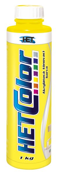 Univerzálna disperzná tónovacia farba do vnútorných aj vonkajších maliarskych náterov, vhodná aj ako priamy náter. Na tónovanie: -disperzných interiérových farieb Hetmal plus, Hetline Eco, Klasik, Brillant a farieb z radu Hetline -dekoračných farieb Brillant-P, Q a R -akrylátových a silikónových fasádnych farieb radu Fasadin a Mikral -latexových farieb -klasických interiérových farieb Supermalba tekutá a Supermalba prášková -interiérových a fasádnych farieb, tmelov, dekoračných a plastických omietok ostatných výrobcov Výhody: -široká farebná škála odtieňov (21 základných farieb) -univerzálne použitie na vnútorné a vonkajšie nátery -ľahká a rýchla príprava tónovaného odtieňa -dlhodobá farebná stabilita odtieňov -vynikajúca priľnavosť -odolná voči umývaniu a oteru v zmysle normy DIN 53778-S -farby v plnom tóne sú vhodné aj na okamžité použitie -garantovaná farebnosť odtieňov -tónovanie maliarskych farieb iných výrobcov Skladovanie: -pri teplotách nad +3 až +30 °C, nesmie zmrznúť, chrániť pred priamym slnečným žiarením Balenie: -plastové dózy 350 g, 1 kg