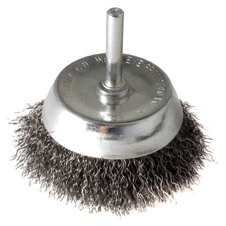 Kartáč hrnčekový so stopkou, vlnitý pomosadzený drôt 0,3mm, 63mm, stopka pr.6mm
