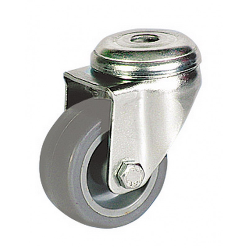 Kolesá so štandardnou gumovou obručou sa radia medzi transportné a rolovacie kolieska - nachádzajú uplatnenie v priemyselných oblastiach. Tieto kolesá môžu byť vybavené brzdou kolesa aj otočnou vidlicou. Brzdiaci a aretačný mechanizmus môže byť použitý len ako parkovacia brzda. Nie sú určené pre hnané aplikácie. Technické informácie: Nosnosť - pre stanovenie nosnosti kolies je potrebné poznať na aký účel a v akých podmienkach budú kolesá využívané. Rozbehový a valivý odpor - je určený silou, ktorú je nutné vynaložiť na prekonanie odporu prostredia a manipulačného zariadenia pre rozjazd a jazdu transportného zariadenia. Rozbehový a valivý odpor je ovplyvnený: faktorom prostredia (kvalita podlahy, teplota prostredia a chemická záťaž) a faktorom odporu vznikajúceho v manipulačnom zariadení (materiál behúňa, priemer kolies, typ ložiska, hmotnosť transportného zariadenia, hmotnosť nákladu). Behúň kolesa - typ behúňa má prvoradý význam pri výbere vhodného kolesa, ktoré má najlepšie vyhovovať danému druhu a podmienkam použitia. Vhodnosť behúňa vychádza z požiadaviek nosnosti, povrchu podlahy, funkcie zariadenia, frekvencie používania a vonkajších podmienok. Disk kolesa - nosná časť kolesa, do jeho stredu sa osádzajú príslušné typy ložísk, na vonkajšom priemere je mechanicky alebo chemicky uchytená obruč kolesa. Ložisko kolesa - výber správneho typu ložiska má veľký vplyv na ľahkú pohyblivosť manipulačného zariadenia a na dĺžku životnosti kolesa. Chemická odolnosť materiálov - je potrebné ju posudzovať hlavne v tých prípadoch, kedy dochádza k bezprostrednému kontaktu behúňa, obruče, alebo disku s agresívnymi látkami.Nesprávne použitie kolies - vzniká vtedy, ak: sú kolesá použité na nevhodnom a nerovnom podklade je teplota okolia príliš nízka, alebo vysoká došlo k neprimerane silnému nárazu alebo pádu sa do obruče kolesa dostali cudzie telesá boli kolieska používané s príliš vysokou rýchlosťou boli urobené zmeny na výrobku, ktoré neboli odsúhlasené výrobcomVlastnosti:Priemer kolesa: 160 mmŠírka kolesa: 38 mmVyloženie: 50 mmRozteč upínacích otvorov: 105x75 mmPriemer upínacích otvorov: 11 mmRozmer príruby: 133x105 mmVýška: 193 mmNosnosť: 150 kgTyp ložiska: ihlovéDisk: oceľový plech - pozinkovaný