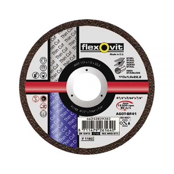 Rezný kotúč THIN CUT Flexovit sa vyznačuje rýchlym stabilným rezom po celej dĺžke životnosti kotúča, s nižšou stratou pri priereze. Pretože neobsahuje železo, chlór a síru je vhodný na nerez a oceľ.