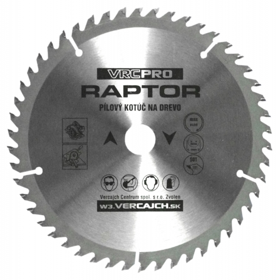 Pílové kotúče VRCPRO Raptor sú určené na rezanie dreva a drevotrieskových – laminovaných materiálov. Sú osadené tvrdokovovými TK plátkami veľmi dobrej kvality, ktoré spĺňajú všetky parametre podľa predpísaných noriem. Tento kotúč znesie zaťaženie pri práci remeselníkov. s TK plátkami otáčky max. 7600 /min upínanie 30 / 20 mm 185 mm 24 zubov