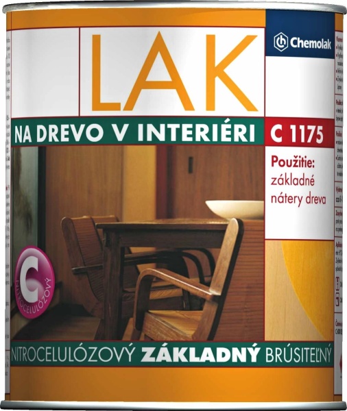 Lak C1175 0010 – Nitrocelulózový základný brúsiteľný polomatný vyplňovací transparentný lak na drevo 0,75l