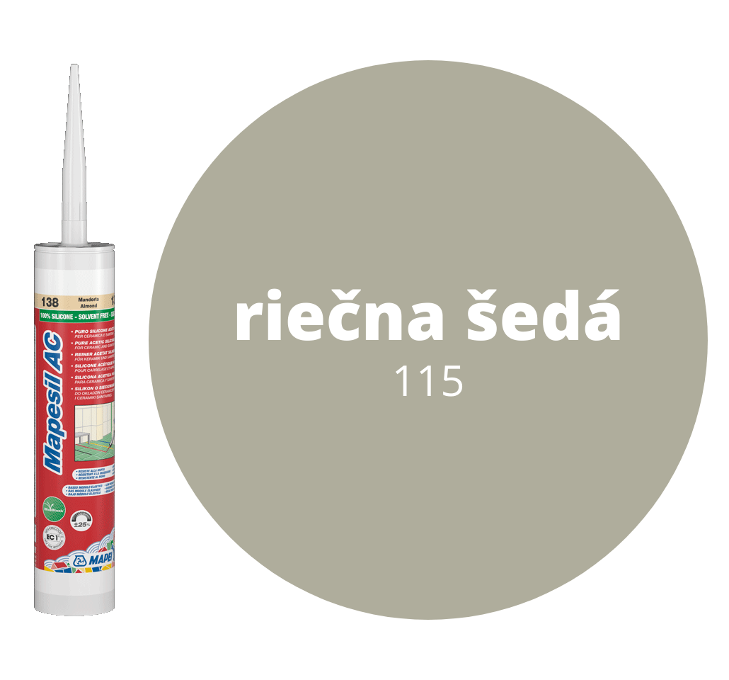 Bezrozpúšťadlový silikónový tesniaci tmel s kyslou reakciou odolný proti plesniam.Mapesil AC je silikónový tesniaci tmel sieťujúci v kyslom prostredí vhodný na tmelenie skla, keramiky a eloxovaného hliníka.Mapesil AC sa používa na: - Tesnenie dilatačných škár s pohybom ± 25% ich pôvodného rozmeru. - Dokonalé vytvorenie pružného tesnenia medzi rôznymi prvkami používanými v stavebnom, strojárenskom, lodnom, automobilovom priemysle atď.Sieťuje vplyvom atmosférickej vlhkosti pri bežnej teplote prostredia a vytvára pružný materiál s nasledovnými vlastnosťami: - Vynikajúca životnosť. Vlastnosti tesniaceho tmelu zostávajú nemenné, a to aj po dlhoročnom vystavení extrémnym klimatickým podmienkam, priemyselnému znečisteniu, náhlym zmenám teploty a ponoreniu do vody. - Vysoká pružnosť - Vynikajúca priľnavosť ku sklu, keramike a eloxovanému hliníku - Odolný proti plesniam - Vodonepriepustný a priepustný pre vodnú paru - Odoláva chemickým vplyvom - Pružný až do teploty -40°C a odolný teplotám do +180°C - Ľahko spracovateľný - V súlade s normou ISO 11600 je klasifikovaný ako F-25-LM.