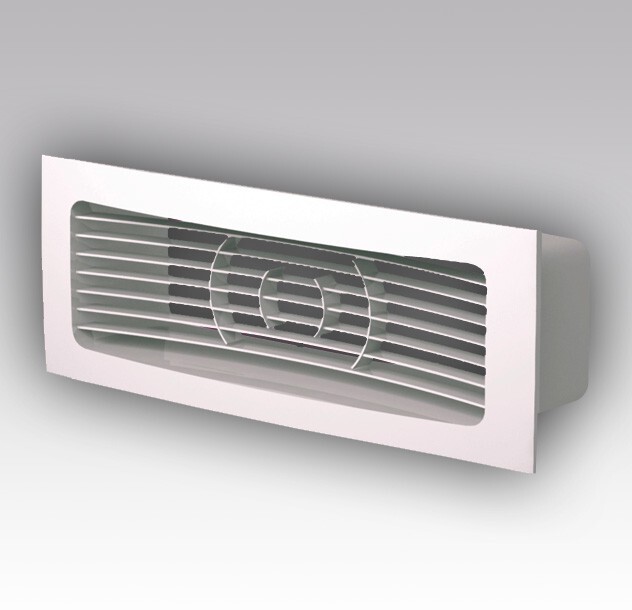 Na ukončenie plochého potrubia sa používa ventilačná mriežka s golierom 110×55 mm. Vonkajšie rozmery mriežky 140×85 mm. Biela farba.