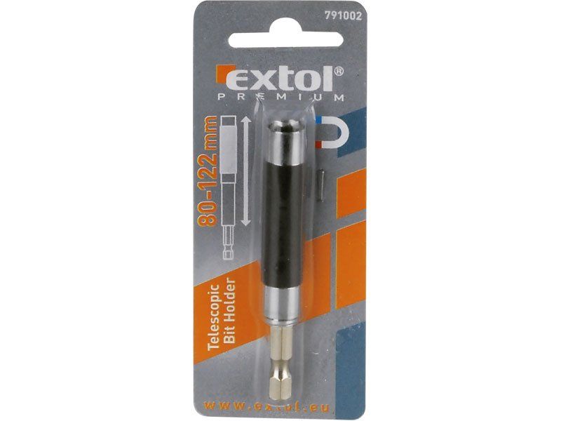 Nadstavec na bity magnetický, 1/4″x80-122mm, antikorový jadro je vyrobené z ocele triedy S2, dosahuje vrypovú tvrdosť 61-62 HRC pri zachovaní výnimočnej pevnosti v rozsahu 13,2-14,7 Nm povrchová úprava pieskovaním a pasivovaním pre zvýšenie odolnosti proti oxidačným vplyvom Vlastnosti Nadstavec na bity magnetický, 1/4″x80-122mm, antikorový, EXTOL PREMIUM: 1/4″x80-122mm antikorový Vyrobené/obsahuje materiál: chróm-vanádiová oceľ Číslo modelu Extol: 791002