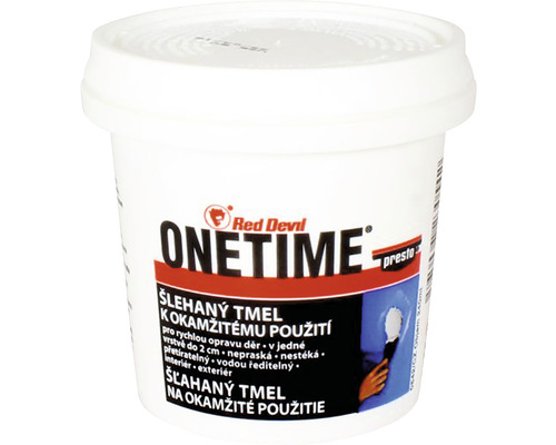 Šľahaný tmel onetime je vhodný na opravu panelových stien, omietok, sadrokartónov, dreva, drevotriesky alebo štuku n stenách a stropoch v interiéroch aj exteriéroch. Tmel sa ľahko modeluje, nevysychá, nesteká. Nie je vhodný na použitie v tenkej vrstve na veľkých plochách – stierkovanie, a taktiež na tmelenie plastov a kovov.