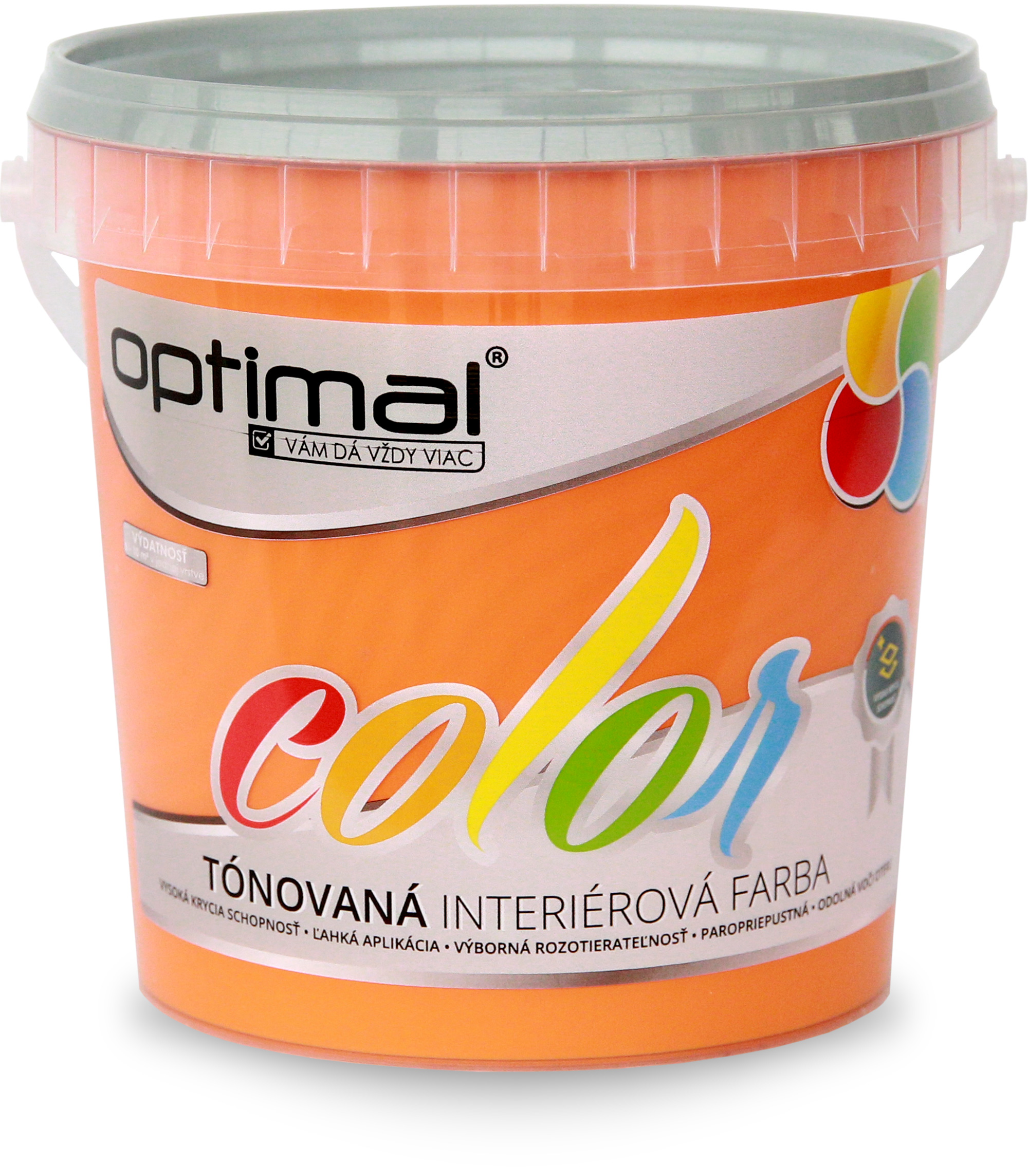 Kvalitná tónovaná, matná, oteruvzdorná, vysoko paropriepustná, rýchloschnúca interiérová disperzná farba s vysokou krycou schopnosťou a rozotierateľnosťou na okamžité použitie. Výhody: okamžitá aplikácia tónovanej farby výborná paropriepustnosť odolná voči oteru za sucha dobrá priľnavosť k minerálnym podkladom schopnosť zaceliť drobné trhliny na natieranom povrchu Použitie: Tónovaná farba Optimal Color je vhodná na vnútorné nátery vápenných, cementových a sadrových omietok, sadrokartónových, sadrovláknitých a drevovláknitých dosiek, betónových panelov, muriva, sanačných omietok, tapiet a pod. Taktiež na aplikáciu na podklady s kombináciou klasických omietok a sadrokartónu. Výrobok spĺňa požiadavky na nátery povrchov, ktoré môžu prichádzať do nepriameho styku s potravinami. Odtiene: odtiene sa aplikujú priamo, alebo sa môžu navzájom ľubovoľne miešať. Svetlejšie odtiene sa získajú zmiešaním s bielym odtieňom. Nanášanie: valčekom, štetkou, štetcom, striekaním Airless. Výdatnosť: 6–10 m2 z 1 kg farby v jednej vrstve podľa nasiakavosti a štruktúry podkladu a hrúbky vrstvy a ďalších faktorov. Teplota (farby, prostredia a podkladu): pri aplikácii a do 24 hodín po aplikácii sa musí pohybovať v rozmedzí +5 až +30 °C. Podklad: vyzretý, chemicky neutrálny, súdržný, suchý, nemastný, nezasolený, zbavený debniacich olejov, bez nečistôt a biologického napadnutia (plesne, riasy). Návod na použitie: pred aplikáciou treba farbu dobre premiešať. napúšťací náter sa vytvorí zriedením farby max. 0,3 l vody na 1 kg farby, a to podľa použitej aplikačnej techniky. Pri extrémne hladkých podkladoch (sadrokartónové, sadrové stierky a pod.) sa pre napúšťací náter používa penetračný prípravok. Ak je podkladom súdržný, nesprašujúci, málo nasiakavý pôvodný náter, napúšťací náter nie je nutný. Vrstvy starých náterov s malou prídržnosťou treba najprv oškrabať. po zaschnutí napúšťacieho náteru sa nanesú 1 až 2 nátery, podľa potreby aj viaceré krycie nátery farbou zriedenou max. 0,1 l vody na 1 kg farby. všetky pomôcky pri pracovných prestávkach treba chrániť proti zaschnutiu a po práci umyť vodou. Doba zasychania (20 °C, rel. vlhkosť vzduchu 60 % obj.): min. 4 hod. Podrobnosti sú uvedené v technickom liste výrobku. Bezpečnosť: obsahuje biocídne výrobky (konzervácia obalu). Obsahuje 3-jód-2-propynyl butylkarbamát. Obsahuje 1,2-benzizotiazol-3(2H)-ón a reakčnú zmes zloženú z týchto látok: 5-chlór-2-metyl-4-izotiazolín-3-ón a 2-metyl-2H-izotiazol-3-ón (3:1). Môže vyvolať alergickú reakciu. Uchovávajte mimo dosahu detí. Odporúčame používať ochranné okuliare a pracovný odev. Pri nanášaní a schnutí dôkladne vetrajte. Pri aplikácii striekaním nevdychujte aerosóly. Prvá pomoc: zasiahnuté oči vypláchnite vodou. Pri požití vypláchnite ústa vodou. Postriekanú pokožku umyte vodou a mydlom. Pri ťažkostiach vyhľadajte lekára. Ak je potrebná lekárska pomoc, majte k dispozícii obal alebo etiketu výrobku. Likvidácia odpadov: Zneškodnite obsah/nádobu v súlade s miestnymi predpismi odovzdaním osobe oprávnenej na likvidáciu odpadu alebo na miesto určené obcou. VOC: ≤1,3 hm.%. Hraničná hodnota VOC kat. A (a) VR: 30 g/l. Max. obsah VOC vo výrobku v stave pripravenom na použitie: ≤18 g/l. Hustota: cca 1,5 – 1,8 g/cm3. Skladovanie: v suchu, pri +3 až +30 °C, nesmie zmrznúť, chrániť pred priamym slnečným žiarením. Vznik jemného bieleho závoja na vnútornej strane obalu neznamená zníženú kvalitu výrobku. Dátum spotreby: v pôvodnom neotvorenom obale do dátumu uvedeného na obale (EXP.). Tolerancia plnenia: ±2 %.Výdatnosť: 6 – 10 m2/kg v jednej vrstve Doba schnutia: 2 – 4 h pri 20 °C a 60 % relatívnej vlhkosti vzduchu Skladovanie: pri teplotách nad +3 až +30 °C, nesmie zmrznúť, chrániť pred priamym slnečným žiarenímím. Balenie: plastové vedrá 1,5 kg, 4 kg, 7,5 kg