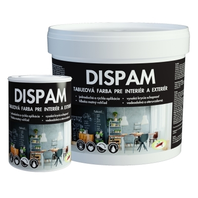 Dispam je tabuľová farba na povrchovú úpravu sololitových dosiek, školských tabúľ, papierovej lepenky a dreva v interiéri aj exteriéri. Farba je oteruvzdorná, odolná voči vode, a má zlepšenú umývateľnosť. Nie je vhodný na povrchy prichádzajúce do styku s potravinami, krmovinami, pitnou vodou a na detský nábytok a hračky. Mechanické zaťaženie školských tabúľ je odporúčané po 24 hodinách. Pred aplikáciou je vhodné drevo ošetriť impregnačným prostriedkom Impregnit Profi. Výdatnosť: 5-7m2/kg na jednu vrstvu v závislosti od savosti podkladu