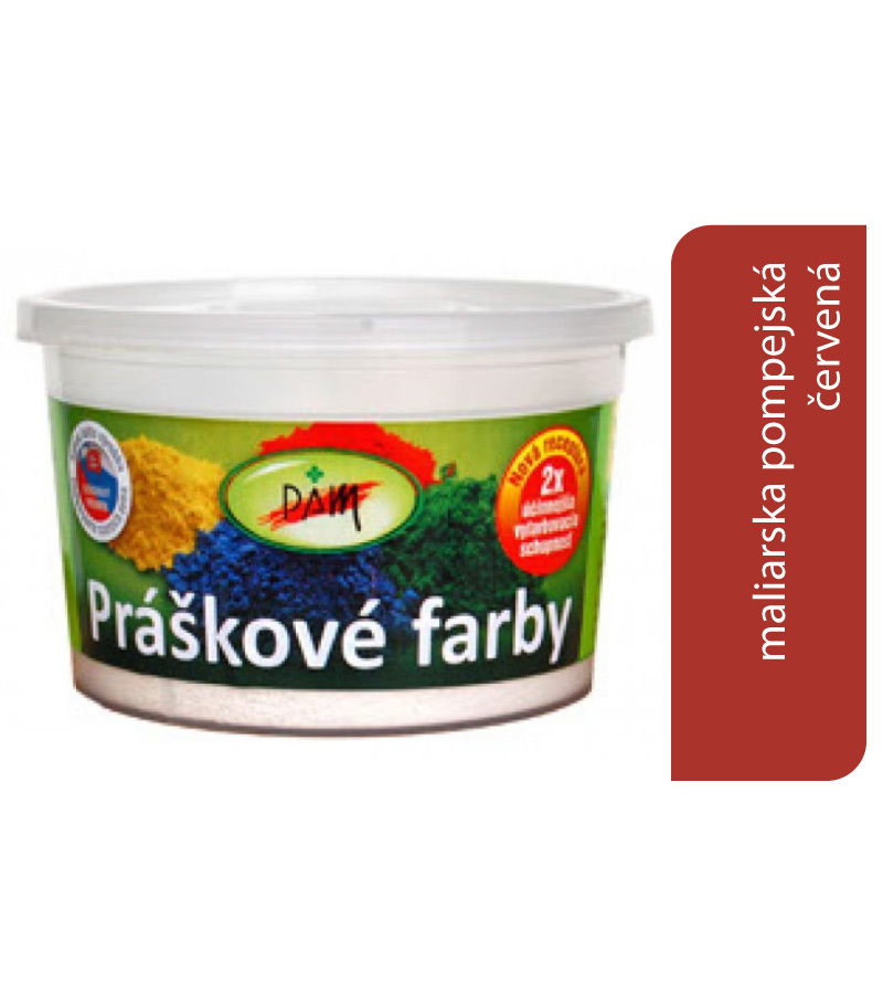 Práškové farby sú na tónovanie maliarskych, latexových, fasádnych, resp. iných disperzných farieb, farbenie betónových zmesí a omietkovín. Pridaním práškového pigmentu do farby dosiahneme požadovaný odtieň náteru, resp. betónu alebo omietkoviny. Práškovú farbu odporúčame starostlivo rozmiešať na pastu v čistej vode, ktorú postupne vmiešame do farby. Obsah práškovej farby vo farbe by nemal prevýšiť 10 hm%.Farebné odtiene Pam práškové farby:     maliarske: beloba, žltá univerzálna, oranžová, červená svetlá, zelená univerzálna, oker, satinober, červená pompejská fasádne (frontony): žltá okrová, modrá do cementu: žltá tmavá, červená, hnedá, čierna Práškové farby sú nehorľavé. Počas práce nejesť, nepiť, nefajčiť. Po ukončení práce umyť ruky teplou vodou, mydlom a ošetriť regeneračným krémom. Pracovné pomôcky očistite vodou. Podrobnosti k bezpečnosti pri práci sú uvedené v Karte bezpečnostných údajov.Balenie:   0,25 kg, 2,5 kg,  10 kg