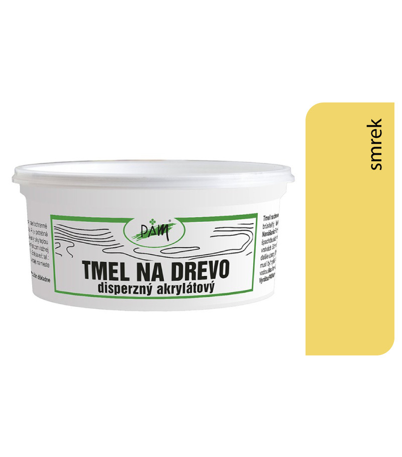 Jednozložkový tmel na vodnej báze polyakrylátu bez horľavých rozpúštadiel, brúsiteľný, lakovateľný, bráni prenikaniu vody, mikroorganizmov a nečistôt do škár.Je určený na tmelenie nerovností prasklín, spojov a hrán na drevených plochách, drevovláknitých doskách, nábytkových dielcoch, oknách, zárubniach, obkladoch a pod. Disperzný tmel na drevo je dobre brúsiteľný, pretierateľný, bráni prenikaniu vody, mikroorganizmov a nečistôt do škár.Vyznačuje sa jemnou štruktúrou, čím sa zvyšuje jeho priľnavosť k podkladu. Vyrába sa vo farebných prevedeniach príbuzných prirodzenému odtieňu dreva. Farebný odtieň:biely, dub, buk, smrek, natural, borovica, parený buk, jelša, gaštan, čerešňa, lieska, čiernyBalenie:V plastových recyklovateľných obaloch 0,2 kg a 0,6 kg.Výdatnosť:v závislosti od stavu tmelených plôchZáručná doba:24 mesiacov od dátumu výroby v originálne uzatvorenom obale