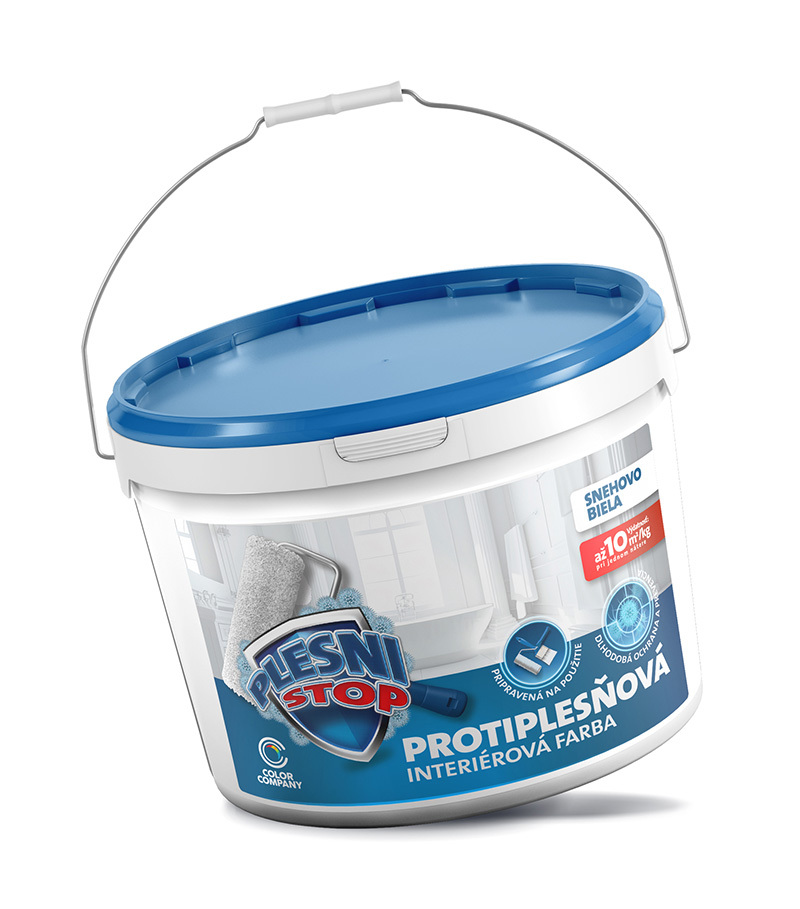 Protiplesňová, snehovo biela interiérová farba určená na steny, stropy a iné minerálne, betónové, sadrokartónové a iné súdržné povrchy. Náter obsahuje špeciálne mikrokapsule, ktoré pomáhajú chrániť povrch pred plesňami. Farba je určená do miestností, kde je zvýšené riziko vzniku plesní, miestnosti s obmedzeným vetraním alebo miestnosti s vyššou vlhkosťou ako napríklad pivnica, špajza, technické miestnosti a iné. Náter je vhodný aj do verejných priestorov či výrobných prevádzok ako napríklad kuchyne, pekárne a iné. Pre vysokú paropiepustnosť môže byť farba použitá aj na sanačne omietky. Návod na použitie: Povrch musí byť suchý, čistý, zbavený mastnoty, prachu a nečistôt. Protiplesňovú farbu pred použitím dôkladne premiešajte. V prípade, že na povrchu je existujúca pleseň povrch nečistite, ani mechanicky neostraňujte pleseň. Takto napadnutý povrch najskôr nastriekajte prípravkom Plesnistop, nechajte pôsobiť cca 24 hodín a po tejto dobe pleseň mechanicky odstráňte. Na takto pripravený povrch môžete aplikovať protiplesňovú farbu PLESNISTOP. Náter aplikujte valcom, štetcom alebo striekaním v dvoch vrstvách. Riedenie: PLESNISTOP protiplesňová interiérová farba je pripravená priamo na použitie. V prípade potreby riedenia rieďte náter maximálne s 5% vody. Výdatnosť: 5 – 10 m²/kg závisí od savosti podkladu. Spotrebujte: do 24 mesiacov od dátumu výroby. Dátum výroby a veľkosť balenia sú uvedené na viečku. Používajte biocídy bezpečným spôsobom. Pred použitím si vždy prečítajte etiketu a pripojené informácie o výrobku.