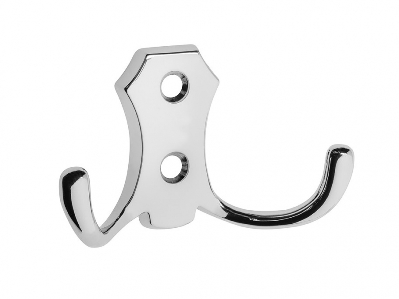 Vešiak na šaty kabáty uteráky kľúče klobúky hák háčik držiak.Háčik má rozostup medzi otvormi 20 mm. Balenie obsahuje spojovací materiál na uchytenie.,Farba – strieborná.
