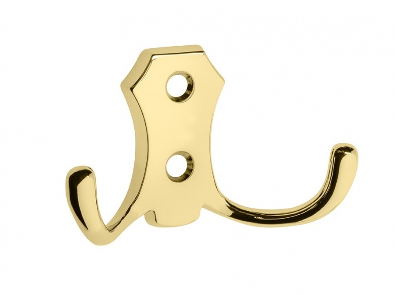 Vešiak na šaty kabáty uteráky kľúče klobúky hák háčik držiak.Háčik má rozostup medzi otvormi 20 mm. Balenie obsahuje spojovací materiál na uchytenie.,Farba – zlatá.