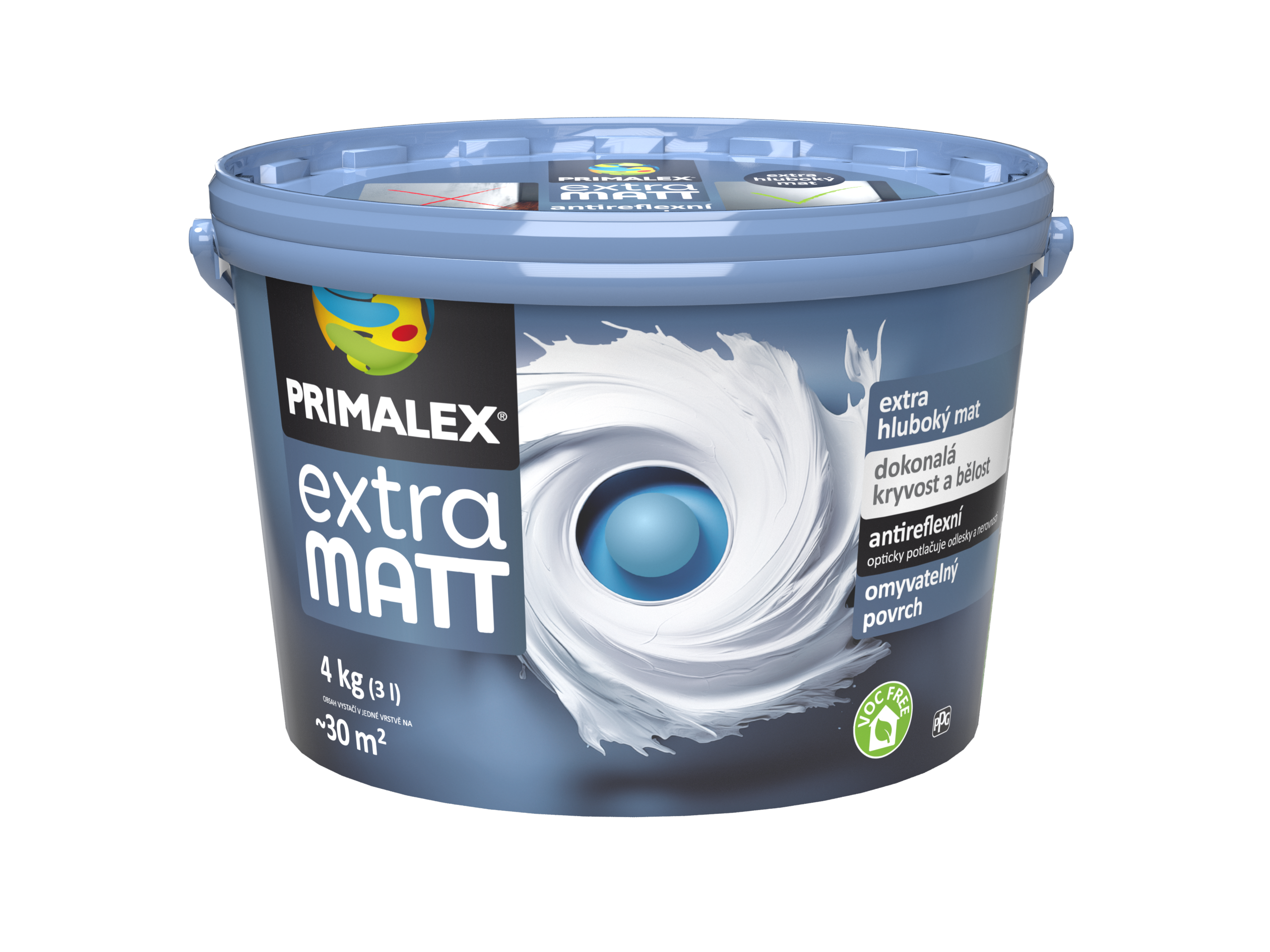 Primalex EXTRA MATT je vysoko kvalitný snehobiely, hlboko matný interiérový náter, ktorý vďaka technológii ANTI-REFLEX a vysokej krycej schopnosti opticky potláča odlesky a tým zakrýva nedokonalosti podkladu. Vytvára umývateľný (trieda 3 podľa STN EN 13 300) a zároveň paropriepustný povrch zaručujúci jednoduchú údržbu a dokonalý vzhľad. Je ideálny pre veľké plochy a stropy. Náter kombinuje vysokú funkčnosť s vysoko estetickou povrchovou úpravou. Jeho aplikácia je pohodlná a jednoduchá.Vlastnosti Primalex Extra Matt: extra hlboký mat dokonalá krycia schopnosť a belosť antireflexný umývateľný povrch Primalex Extra Matt je určený na maľovanie stien a stropov z minerálnych (vrátane sadrových) omietok, betónových povrchov, sadrokartónových aj drevotrieskových dosiek a tapiet (vrátane sklovláknitých) v interiéri. Ideálne využitie nachádza vo veľkých a otvorených priestoroch s dodatkom svetla. Je skvelou voľbou pri rekonštrukciách aj v novostavbách.Výdatnosť: 7-8m2/kg