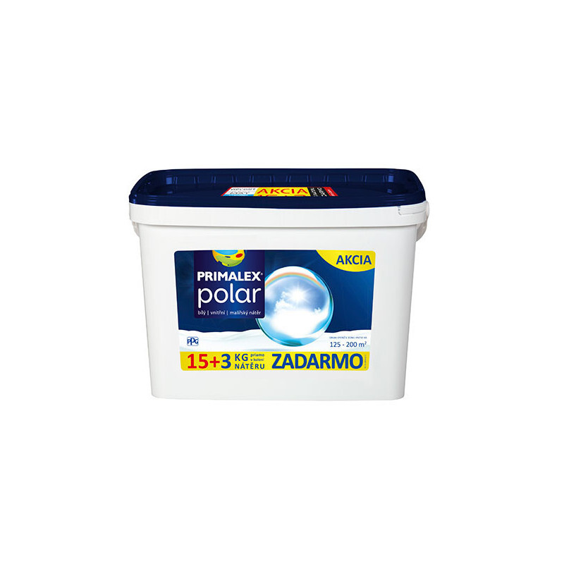 Primalex Polar 15+3kg je náter, ktorý rozjasní interiér dokonalou belosťou (min. 92% BaSO4). Vďaka Primalex Polar je možný dosiahnuteľný dojem väčšieho a vzdušnejšieho priestoru v interiéri. Je vhodný na maľovanie stien a stropov minerálnych omietok aj sadrokartónových dosiek interiérov v obytných a tiež komerčných priestoroch, najmä reprezentatívneho charakteru. Svojim jasne bielym tónom je vhodný taktiež do interiérov, ktoré majú zvýšené požiadavky na osvetlenie. Výdatnosť: 7-11m2/kg v jednej vrstve – je odporúčaná aplikácia v dvoch vrstvách