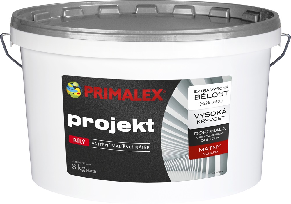 Primalex PROJEKT je náterová hmota spĺňajúca špecifické požiadavky profesionálnych maliarov, ktorí používajú len kvalitné produkty. U najviac sledovaných parametrov disponuje požadovanými hodnotami- vysokou belosťou (89% BaSO4), vysokou krycou schopnosťou a zároveň vynikajúcimi aplikačnými vlastnosťami, ktoré sú zárukou pre dokonalý výsledok a vzhľad interiéru. Súčasne vďaka veľmi dobrej paropriepustnosti ho možno použiť tiež pre nátery sanačných omietok.Výdatnosť v jednej vrstve 10-14(m2/kg) Odporúčame aplikáciu v dvoch vrstvách.