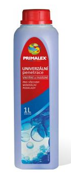 Univerzálna penetrácia Primalex je širokospektrálna vodou riediteľná penetrácia s účinnou látkou na kopolymérnej akrylátovej báze určený na zníženie nasiakavosti a spoľahlivé spevnenie rôznorodých podkladových stavebných materiálov v interiéroch aj exteriéroch. Taktiež zvyšuje prídržnosť vrchných náterov k podkladu. Výdatnosť: 5-25m2/l v jednej vrstve – výdatnosť závisí od typu podkladu