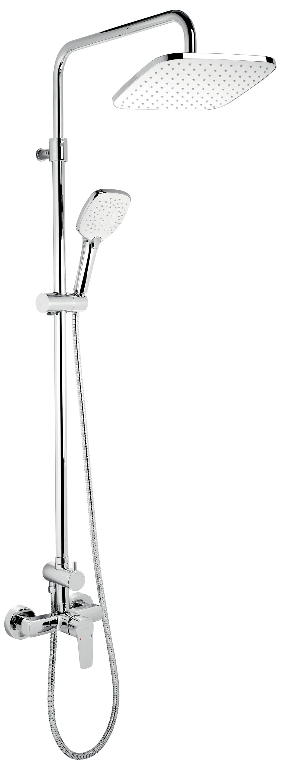 Set obsahuje nástennú sprchovú batériu s horným vývodom a rozstupom 150 mm s kvalitnou a odolnou keramickou kartušou KEROX 35 mm.Prvotriedne chrómové prevedenie. Súčasťou balenia je kovová sprchová hadica 150 cm, hlavová sprcha 230 x 230 mm, 3-polohová ručná sprcha a posuvný jazdec s držiakom ručnej sprchy. Set je výškovo nastaviteľný 1035 – 1225 mm. Umožňuje nastaviť aj odchýlenie vrchného úchytu od steny v rozmedzí 50 – 80 mm. Hlavová sprcha obsahuje šetriaci regulátor prietoku vody na max 12 l/min a je vybavená EASY CLEAN tryskami pre jednoduché čistenie.