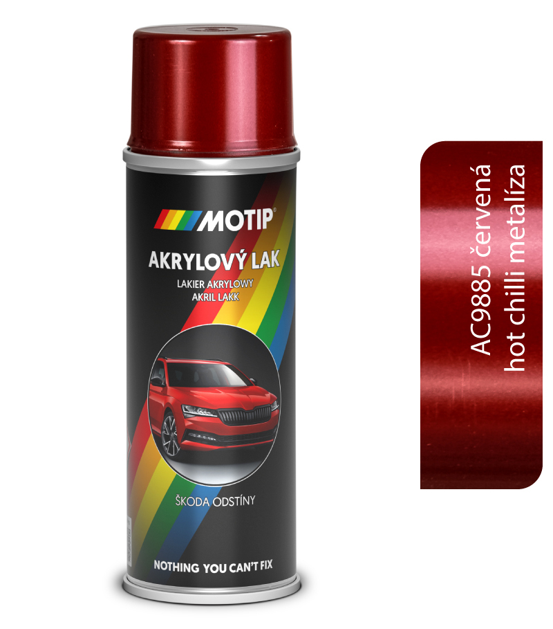 Originálny autolak Škoda s unikátnou tryskou na opravy autolakov.Vlastnosti: vysokokvalitná akrylová farba vynikajúca krycia schopnosť, UV stabilita a odolnosť voči chemikáliám vyrábané sú na základe originálnych farebných štandardov Škoda/Volkswagen Group špeciálne balenie 200ml výdatnosť 0,5m2 - 0,6 m2 z jedného balenia univerzálne odtiene, hladké aj metalické unikátna tryska, ktorá zaručuje plochý nástrek farby na povrch ako u profesionálnej striekacej pištole vďaka tryske je prístup do miest, ktoré s inými tryskami nie sú prístupnéMetalické odtiene doporučujeme prestriekať akrylovým transparentným lakom. Suchý na prach po 10 minútach.