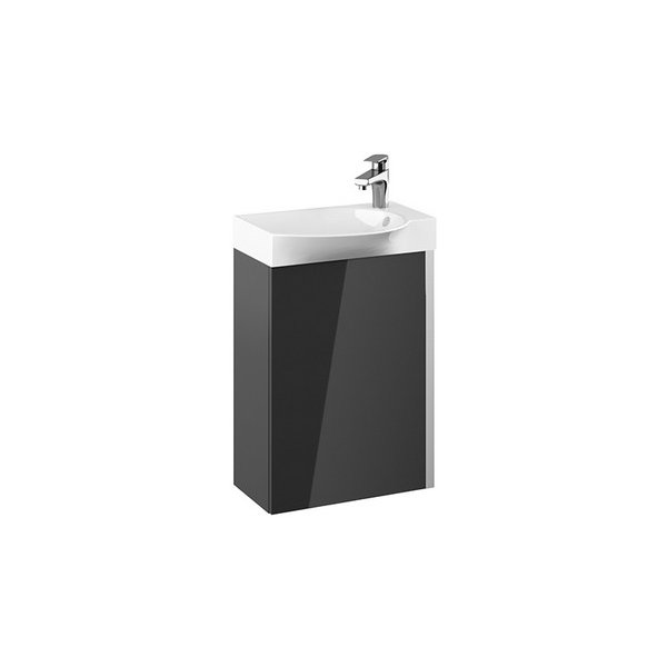 Nábytková skrinka do kúpeľne. Vhodné do menších priestorov, na WC alebo malých kúpeľní. Oceníte tam, kde potrebujete užšie, tzv. kompaktné prevedenie. Rozmery skrinky sú 44,5×24,4x60cm, farba skrinky je antracitová.Parametre zatváranie s doťahom pochrómované úchytky ľavé otváranie dvierok umývadlo s otvorom pre stojankovú vodovodnú batériu (hrana umývadla 15 mm)