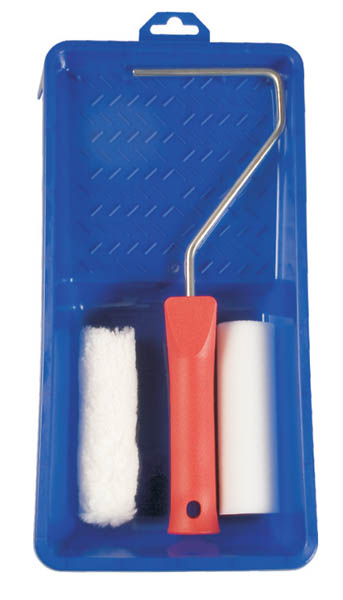 Súprava Perlon vhodná na lakýrnicke práce na ťažko dostupných miestach. Obsahuje valček a vaničku. – valček má šírku 100 mm a kovové držadlo s priemerom 6 mm – vanička je umelá