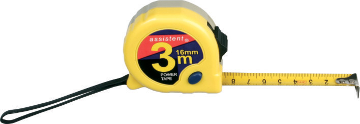 Zviňovací meter s dobre čitateľnou stupnicou a dvomi brzdami, klipom na opasok. Dĺžka 3 m a šírka 16 mm.