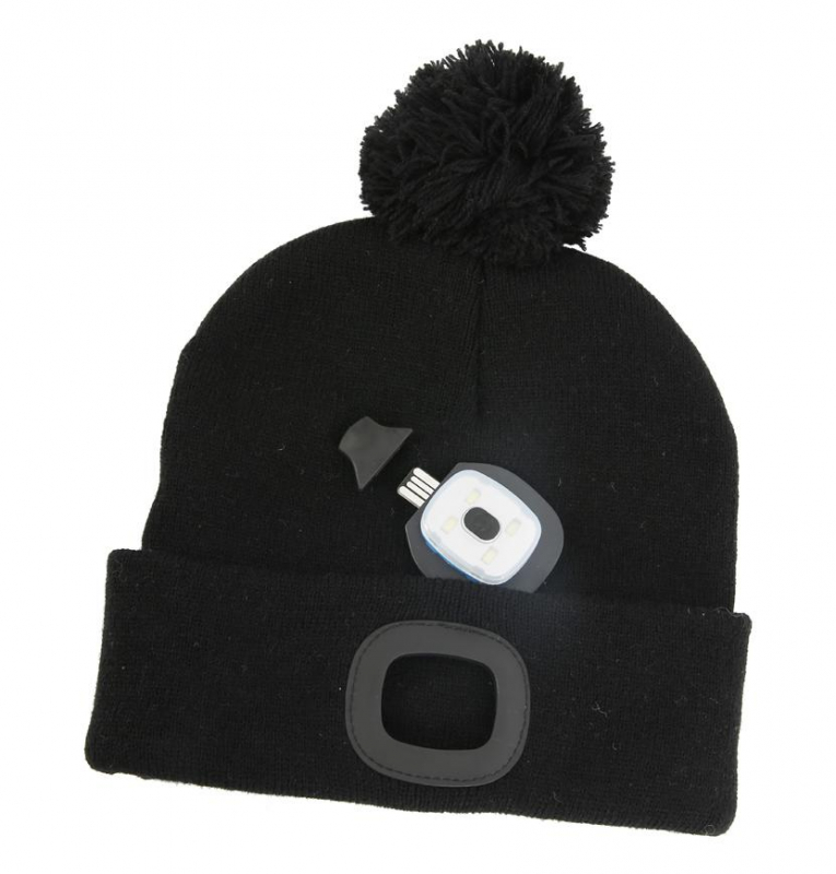 Strend Pro Čiapka LED čierna 4xSMD USB nabíjanie